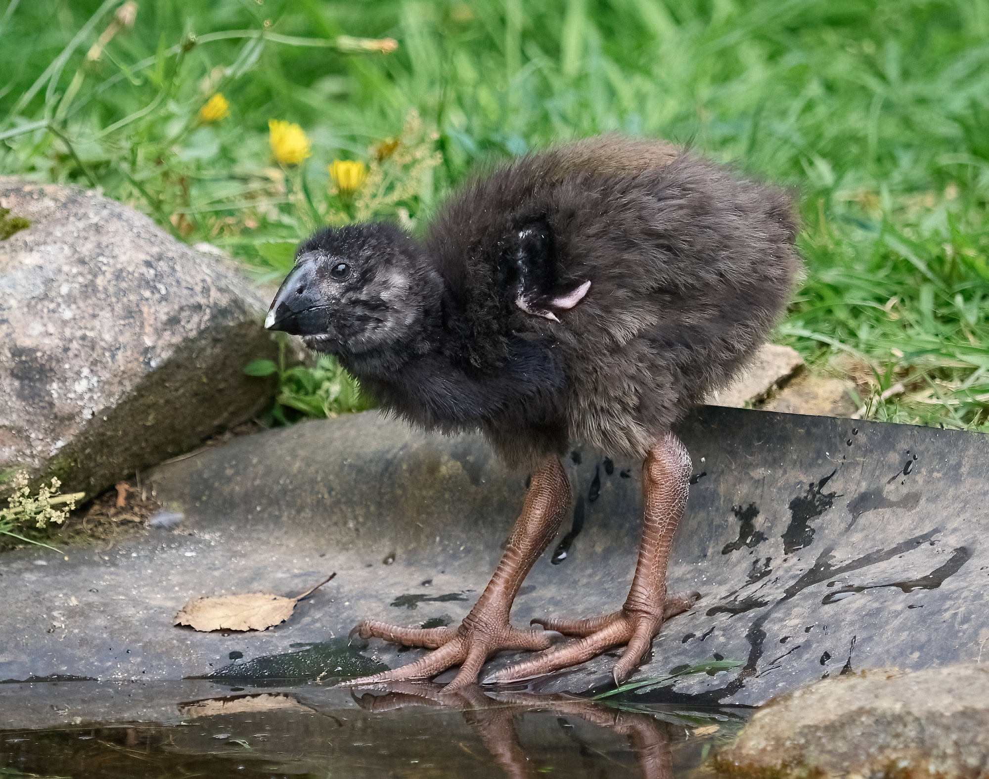 Recently hatched Takahe chick. Note the primitive wing and relatively large feet.