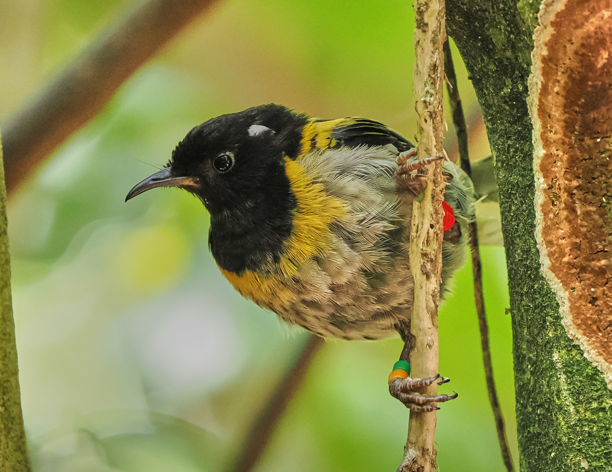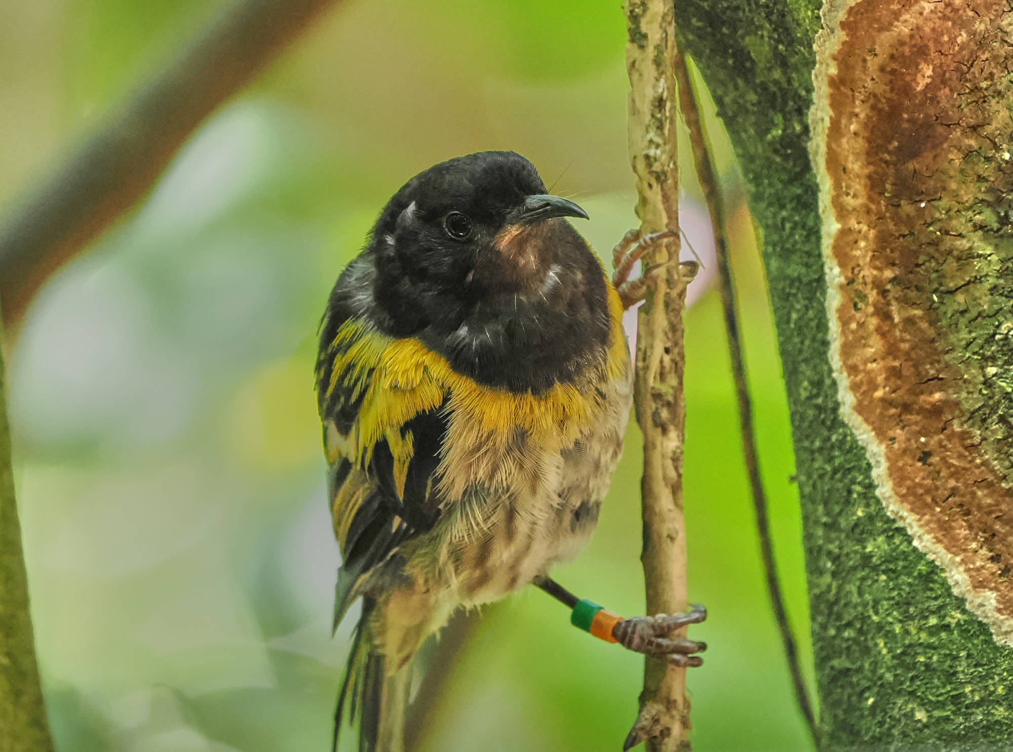 Two images of a male Hihi
