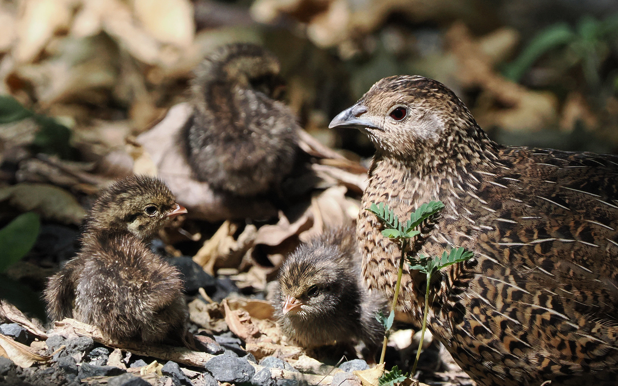 Quail with chicks