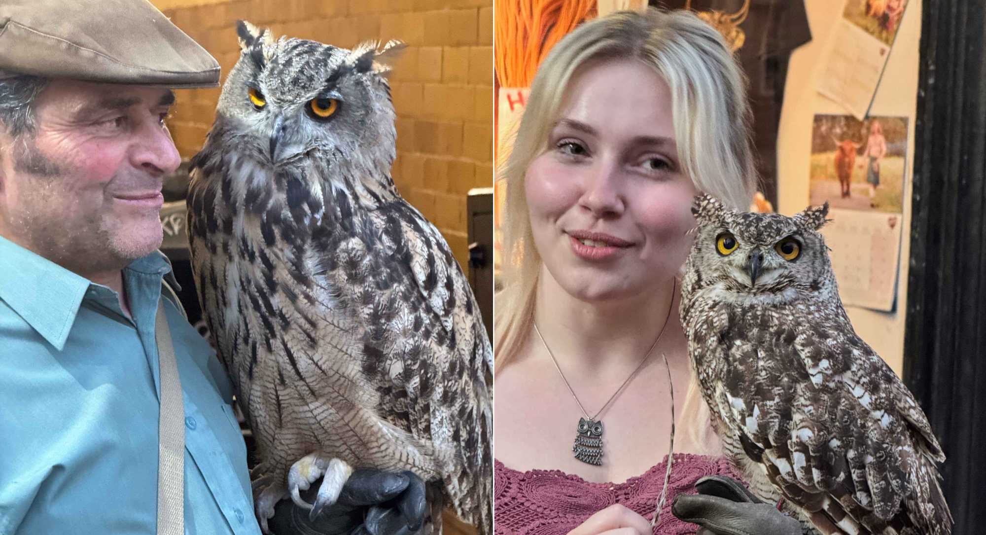 Low light pics taken of owls on display on the Royal Mile (at 8:32pm, iso800 & 640 respectively, 1/33 sec, 120mm)