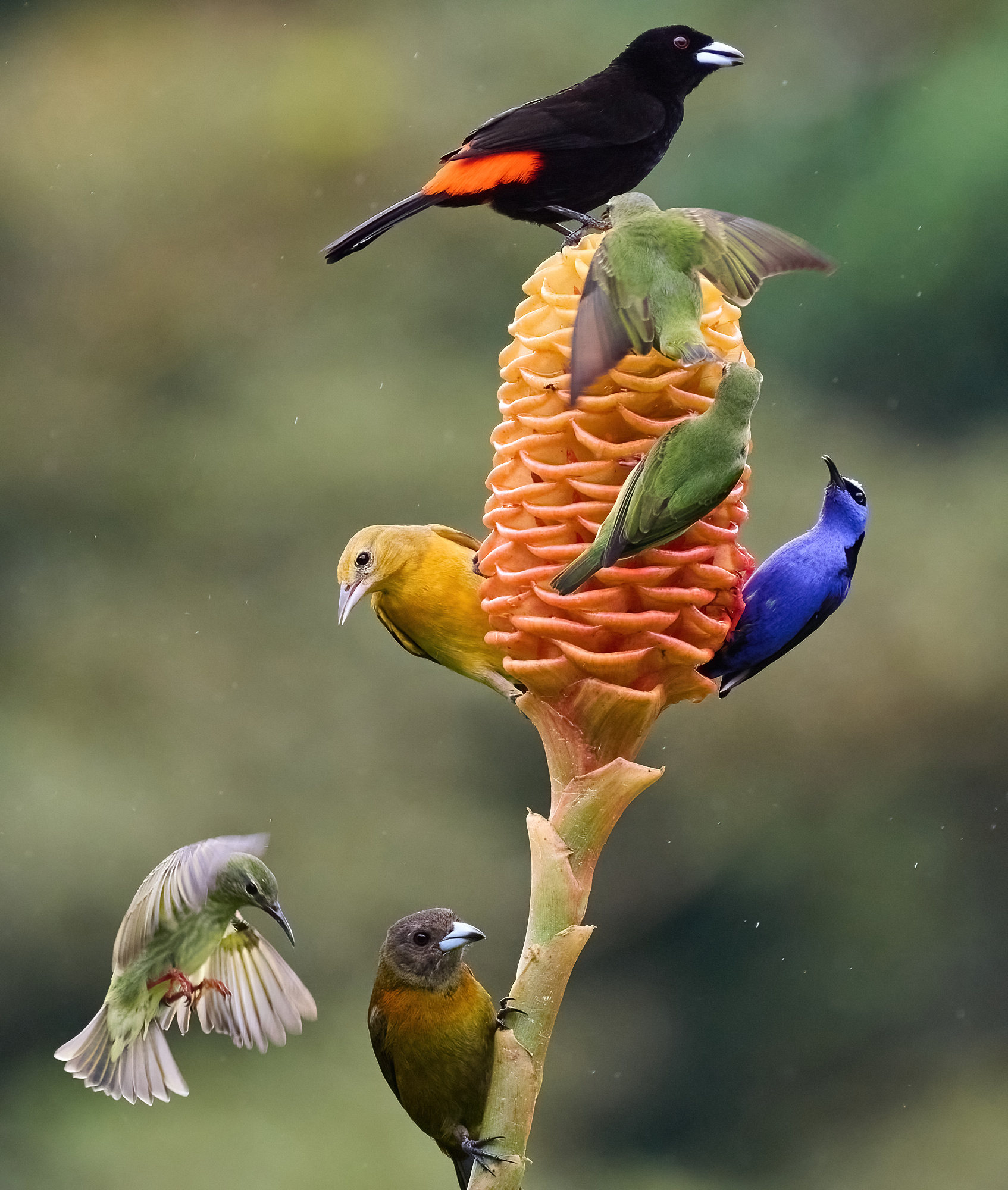 #34 Montage of many birds at ginger flower 1/800, F5.6, ISO2000, 586mm