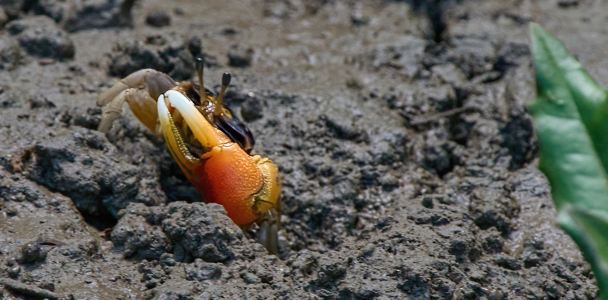 Small crabs on mud banks are food for the salt-water crocs. OM-1MarkII, 1/1000, F8.0, ISO.2500, 1000 mm